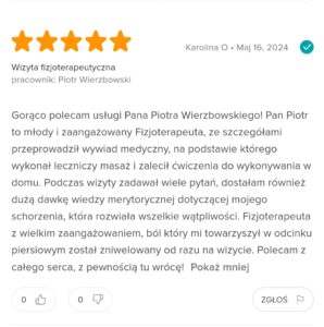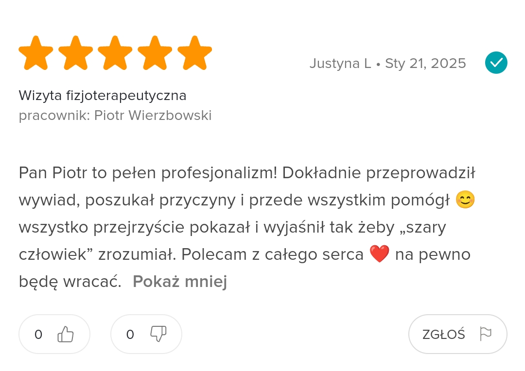 Odzyskaj zdrowie i wróć do pełnej sprawności! Specjalizuję się w nowoczesnych metodach fizjoterapeutycznych, które skutecznie łagodzą ból i przywracają pełną mobilność. Umów się na wizytę i poczuj różnicę!